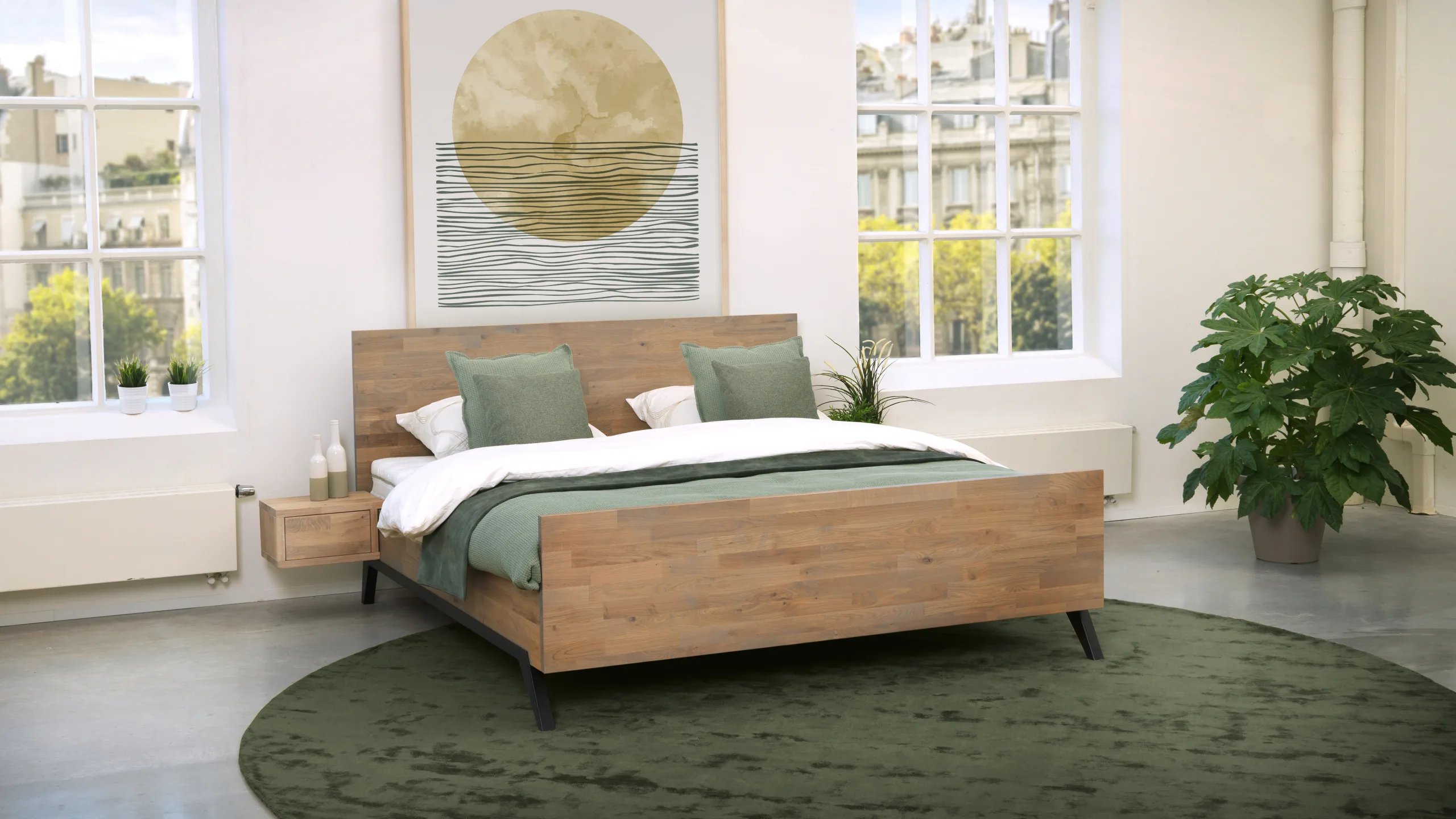 - Optioneel keuze uit twee verschillende type hangende nachtkastjes.
